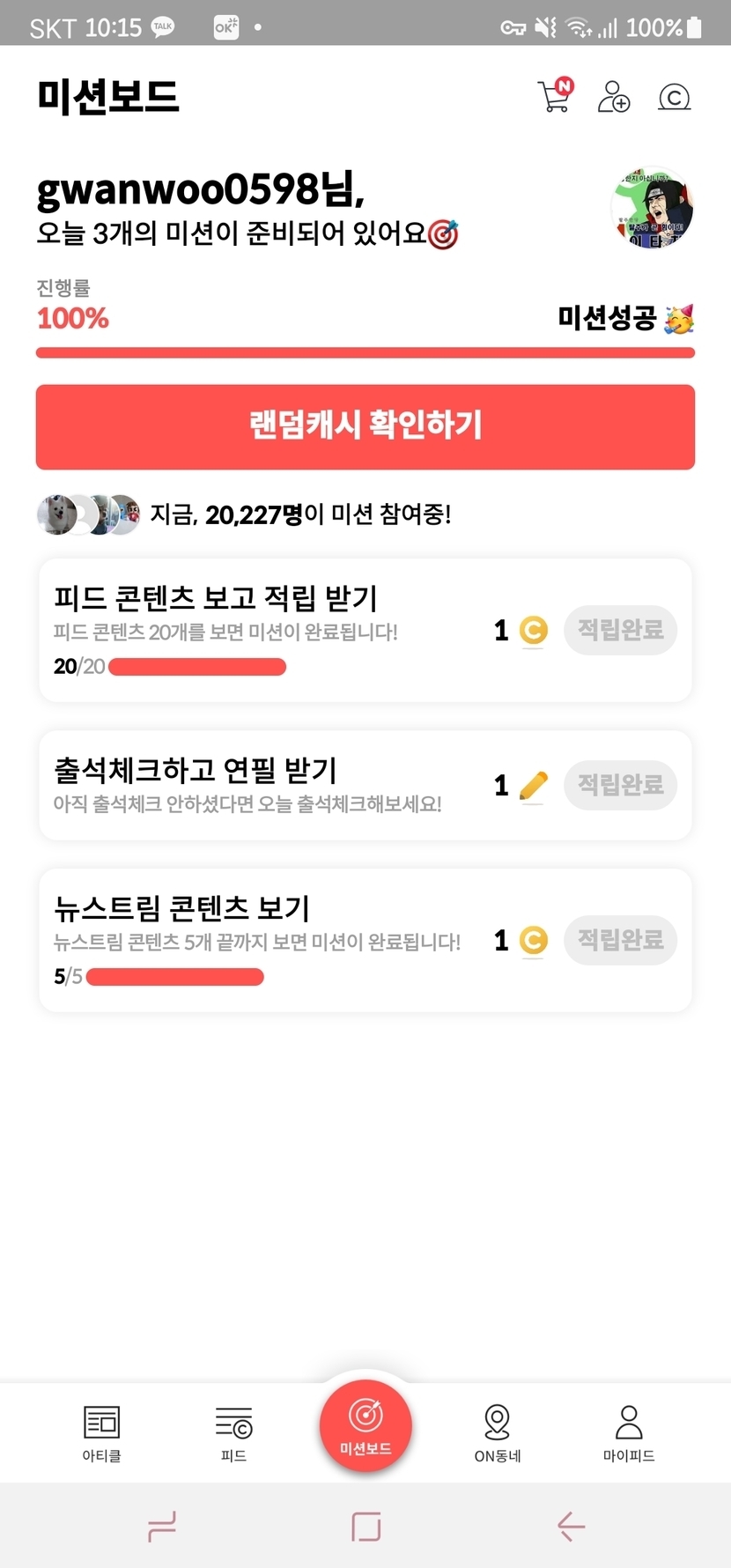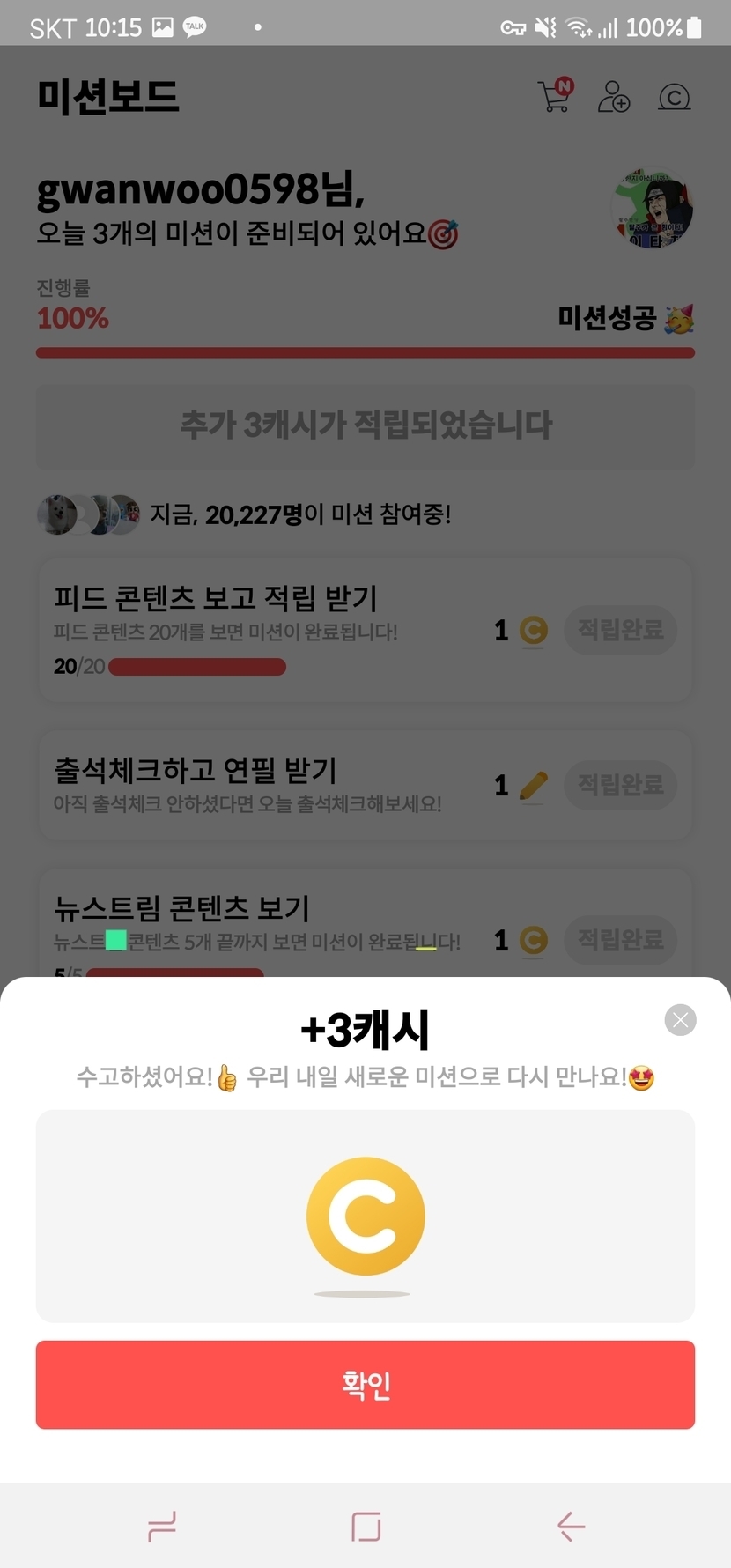 일일 임무 완성~~