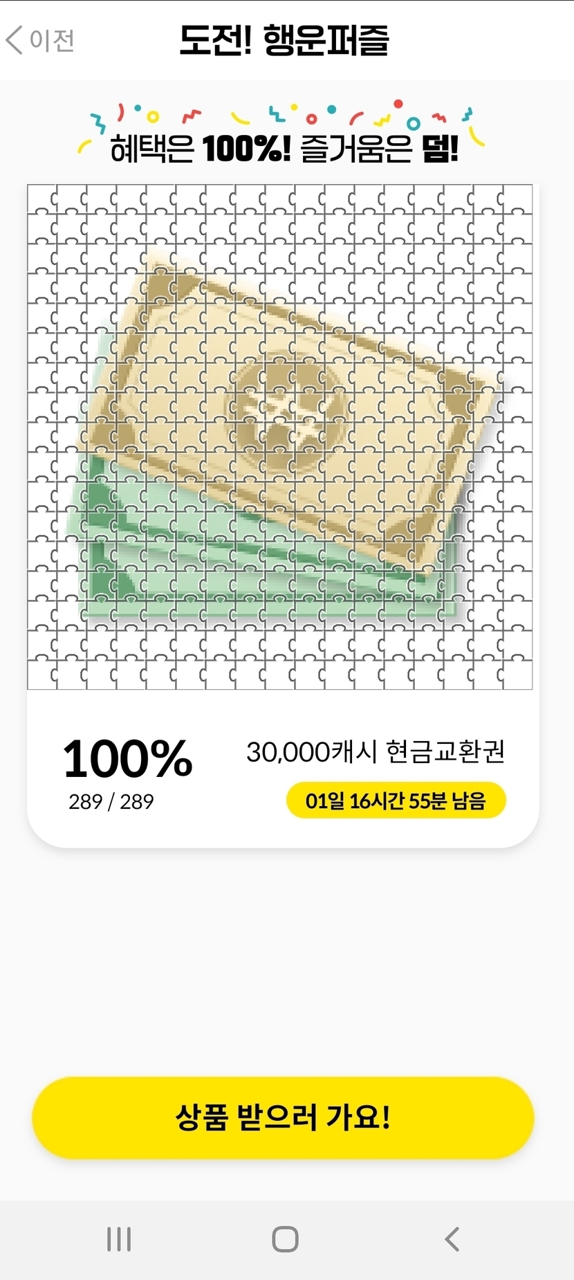 3만원 교환권 퍼즐성공