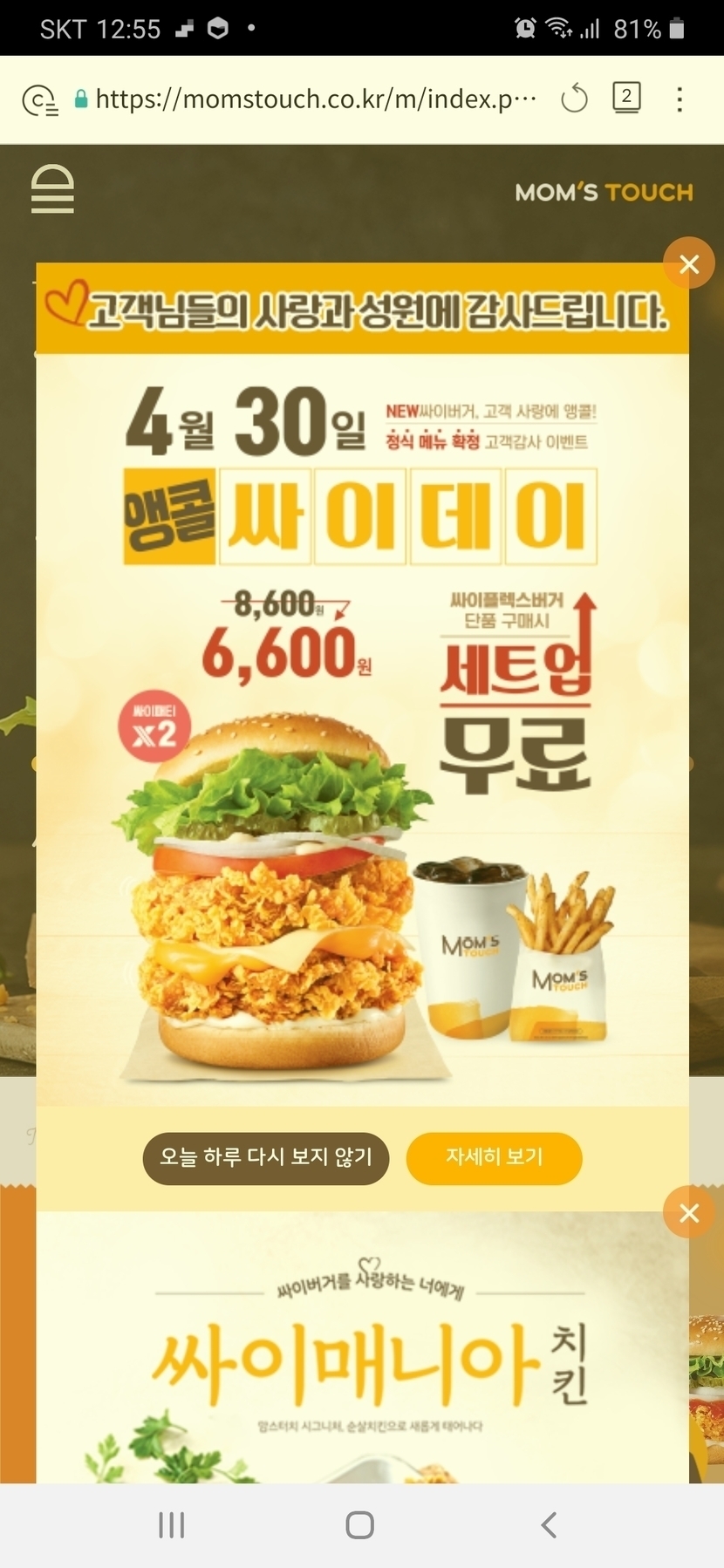 21.04.30 300 읽음 오늘이 바로오!! 싸이플렉스버거(🍗+🍗) 6600원인마지막날!! ※🧡J※ 홍보금지❗먹방TV 구독하기 20 26 콘텐츠의 수익 5 161전화주문 한번도 안해봤어요ㅠ 배송비 들꺼 같아서ㅋㅋㅋㅋ아 배고파아직 안나왔어요ㅠㅠ19살에 아시아나항공 취직했다더라구요제 이메일은 소중합니다 ㅋㅋㅋ 26 0 / 300 입력