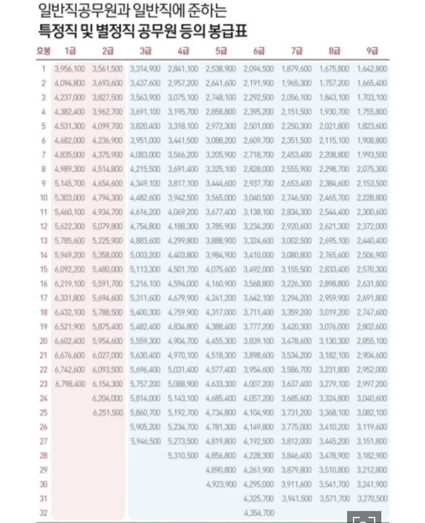 공무원보수2.8%오른다.2020년공무원봉급표