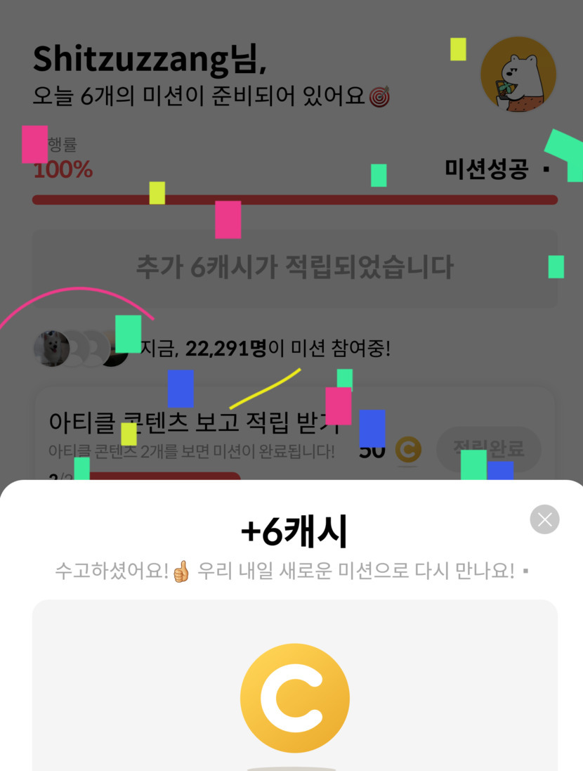 21.05.09 164 읽음 ✍ 미션 완성 캐시 💱💰 Shitzuzzang 구독하기 7 11 콘텐츠의 수익 5 미션 완료하고 오늘은 왠일로 6캐시나 나오네요. 😁😊맨날 3캐시, 4캐시 그랬는데 기분 좋네요 😁좋은 하루 되세요 💐🌹🌺🍀🌷 11 0 / 300 입력