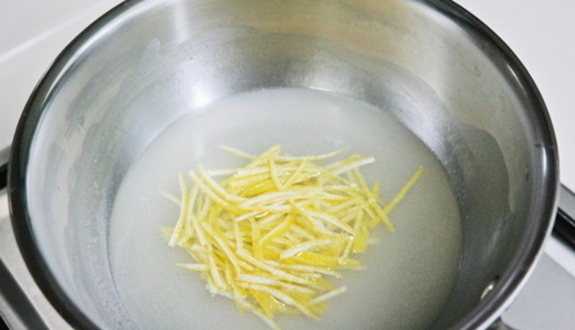 레몬은 깨끗이 씻은 후 껍질을 벗겨 곱게 채 썰어주세요