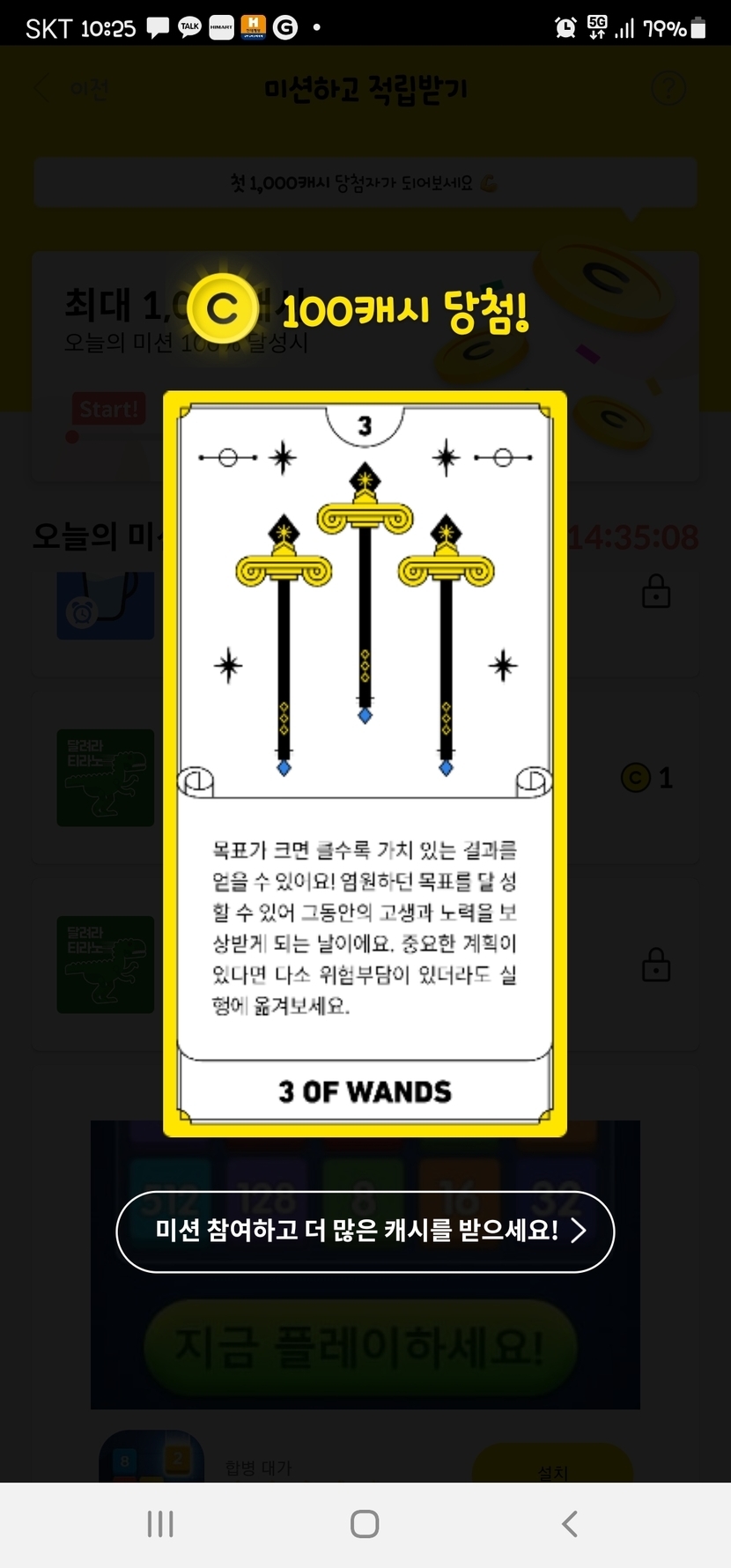카드뽑기에서 처음받은 100포인트