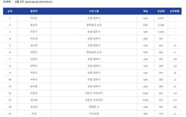 끝나도 순위 높음(여기선 3.5,7,8위가 델루나 오스트)