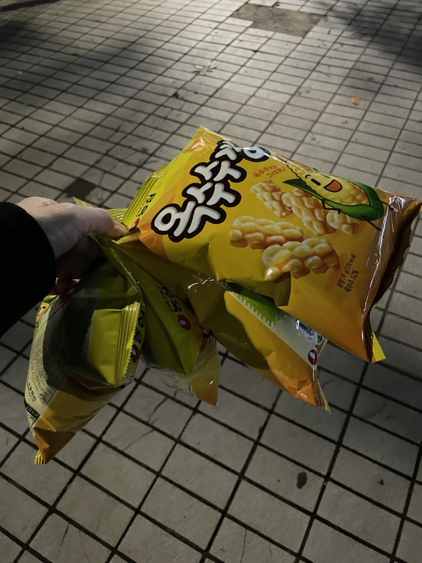 요즘 꼬북칩이랑 옥수수깡이 최애 과자에요
