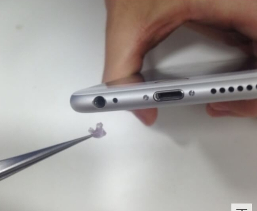 먼저 핀셋을 이용해 충전포트 속의 먼지를 긁어낸다