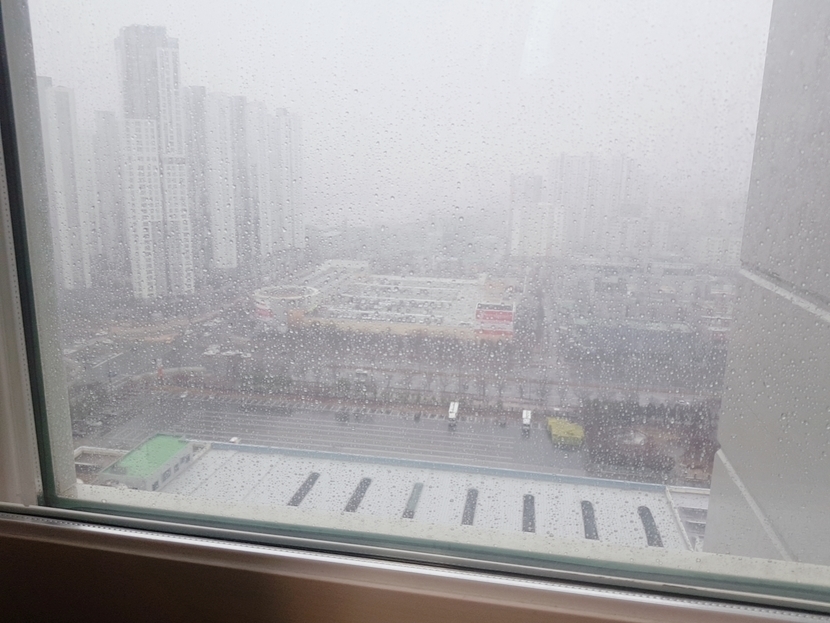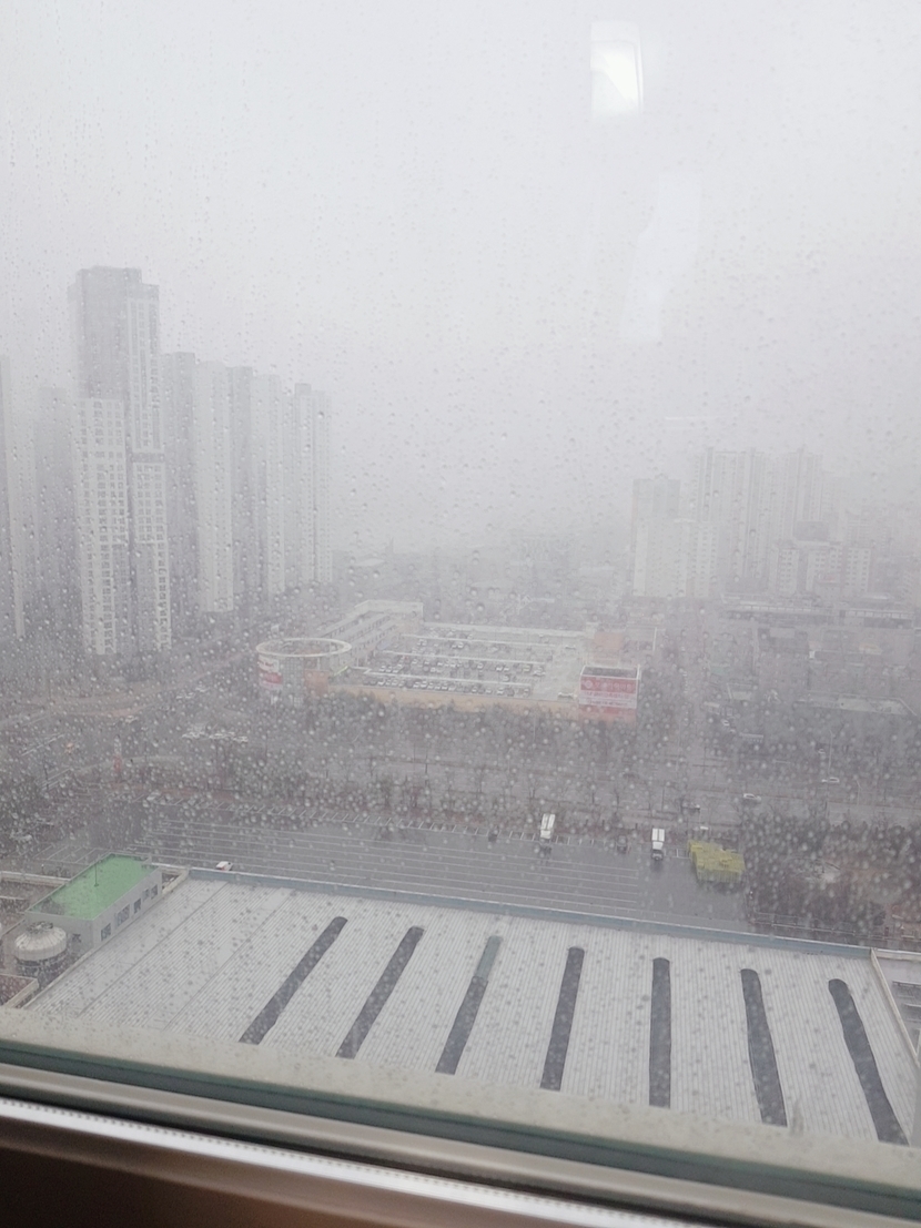 창밖 세상이 온통 회색빛~회색빛 바다같아요.
