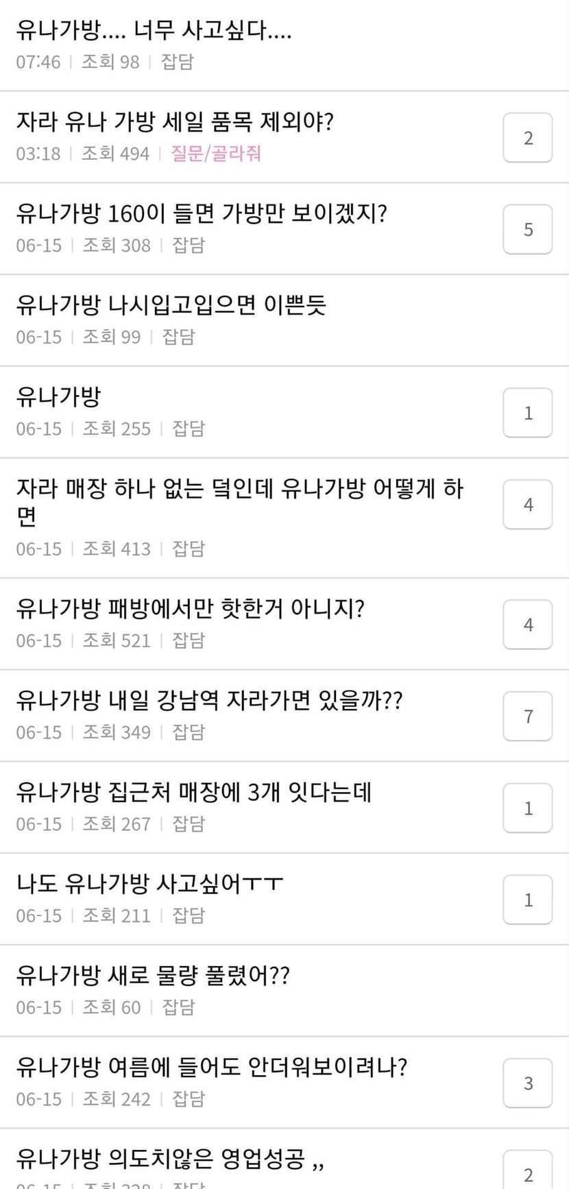 품절됐다는 유나 자라 가방 유나가 들은 거 보고 무슨 명품백인 줄 앎~~