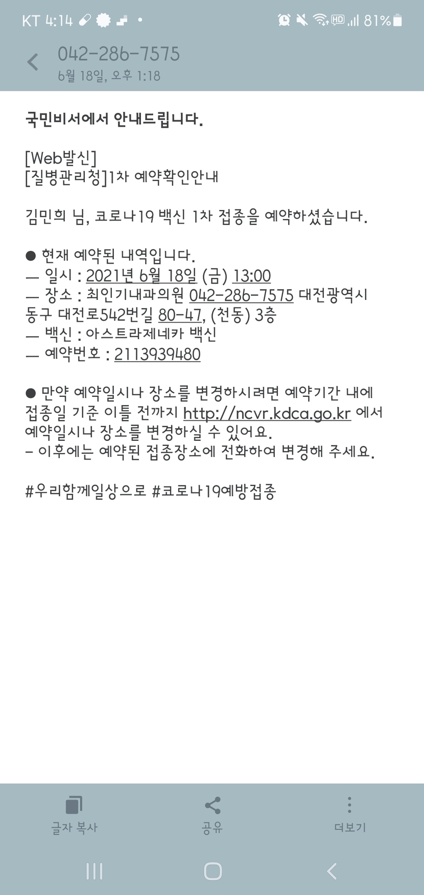 잔여백신예약이요