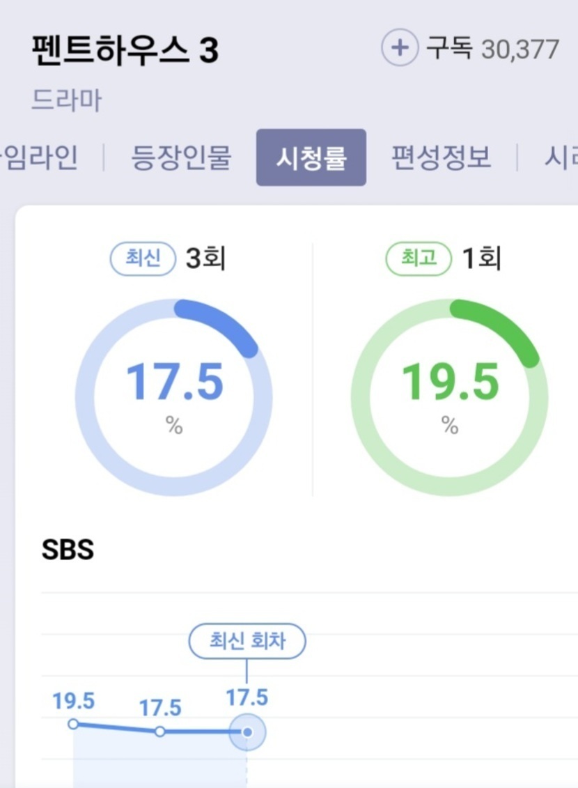 펜트하우스 시청률 비교 시즌32,3회에서 망함ㄷㄷ..