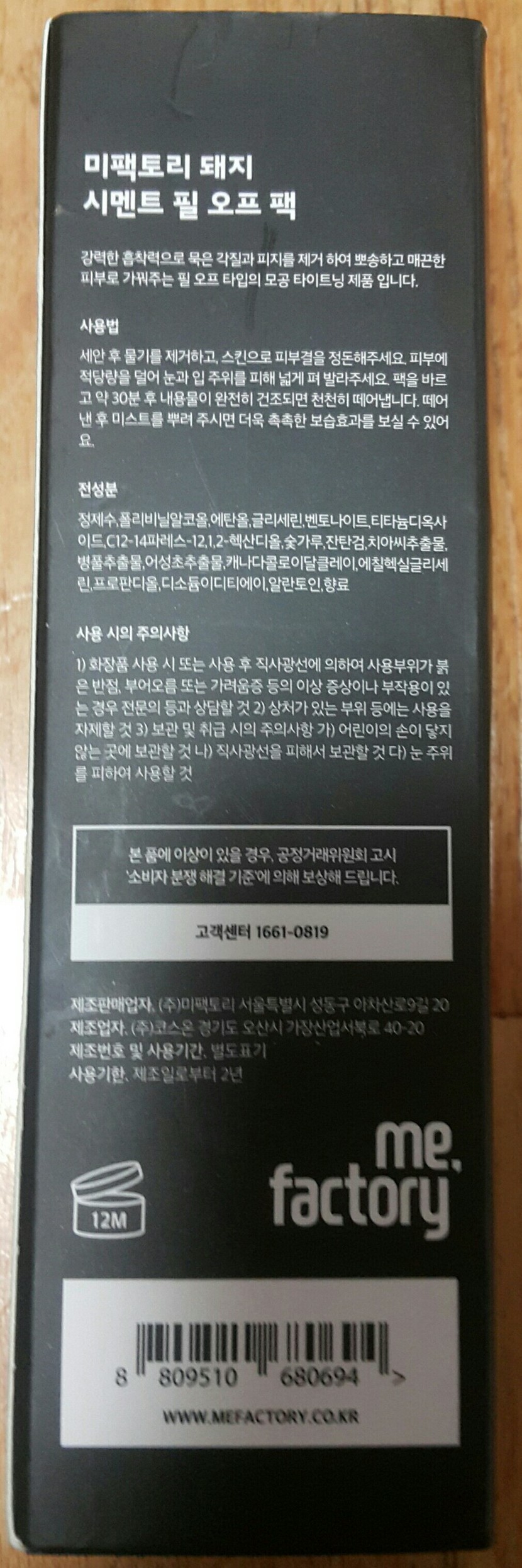 작년에 올리브영에서 산 미팩토리 돼지 시멘트 필 오프 팩 이다. 사용방법이다.안에는 이렇게 되어있다.용량은 120ml이다.색은 회색이며, 이 팩은 얼굴에 발라주는것이다. 되도록이면, 너무 얇게 보다는 조금 두껍게 발라주는것이 좋다.잘 모를 때에는 참고해주세요.이 미팩토리는 피지랑 노페물이 잘 나오기에 좋지만 두껍게 발라야 한다는점 그러면, 말라지는 시간도 늘어간다는 점이 불편하다. 나는 이 팩은 최대 1시간 정도 였다.이 팩 뗄때에 피부가 늘어나기에 아프다는점!!!! 근데 이것도 많이 하면 피부도 악화될듯,,,, 그래도 계속 쌓아두지는 말기!!!!