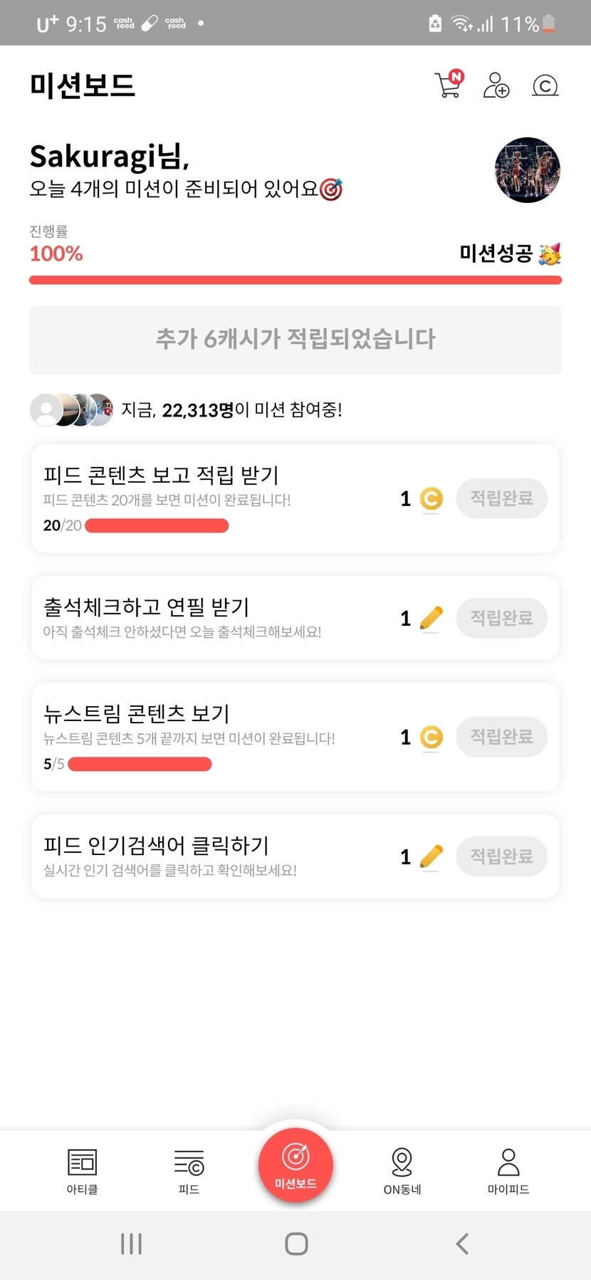 오늘도 미션 성공 했습니다 ㅎㅎ