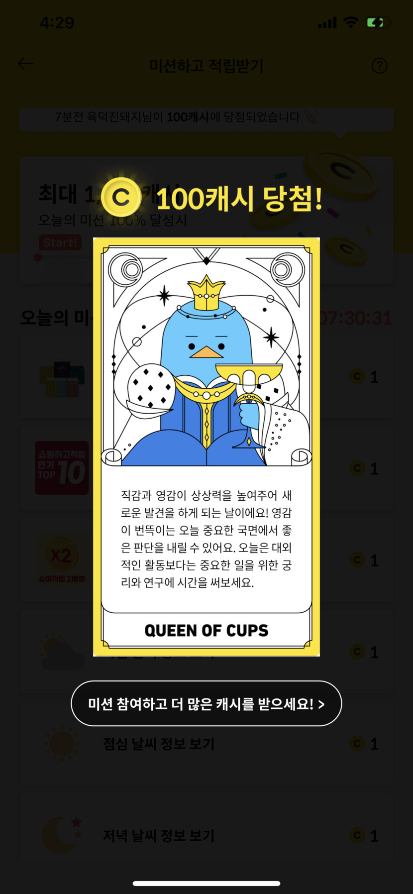 오랜만에 100캐시..