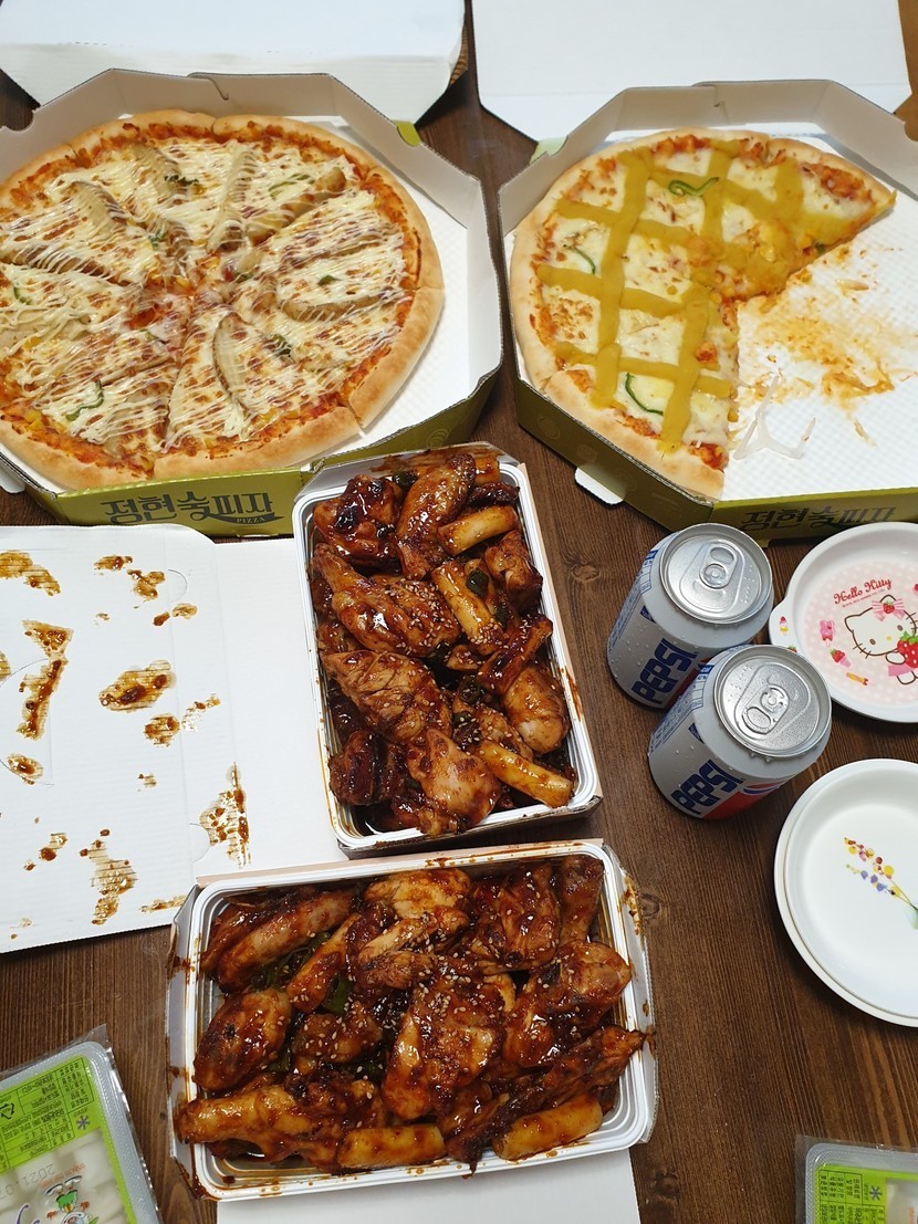 치킨이랑 피자 배달시켰어요