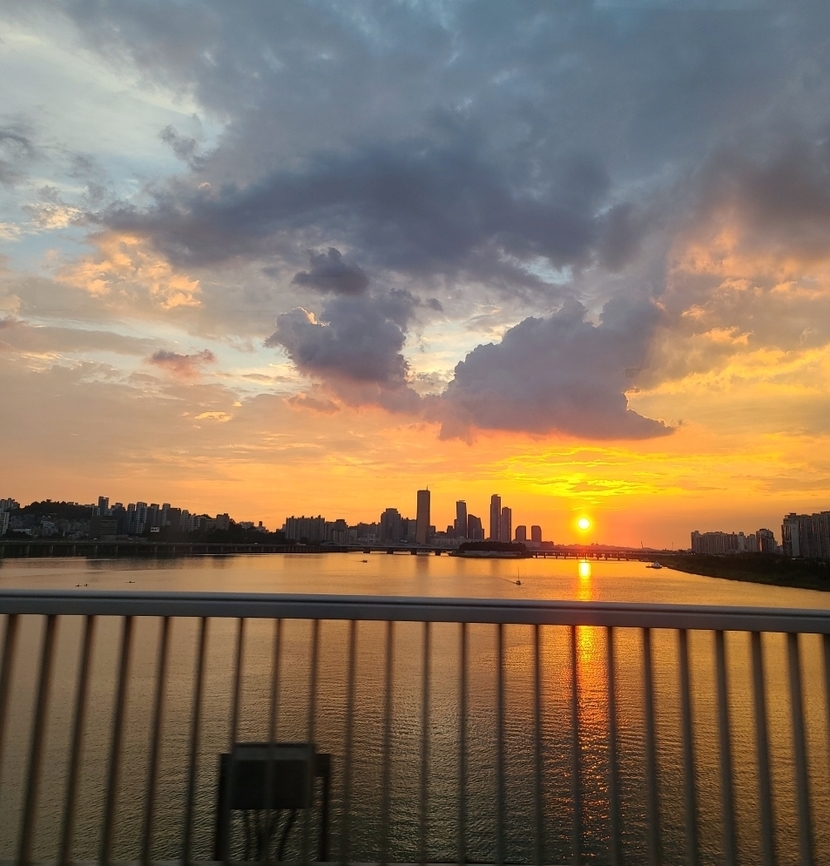 다들 한강다리에 대포들고 나와서 일몰 찍고 있더라구여