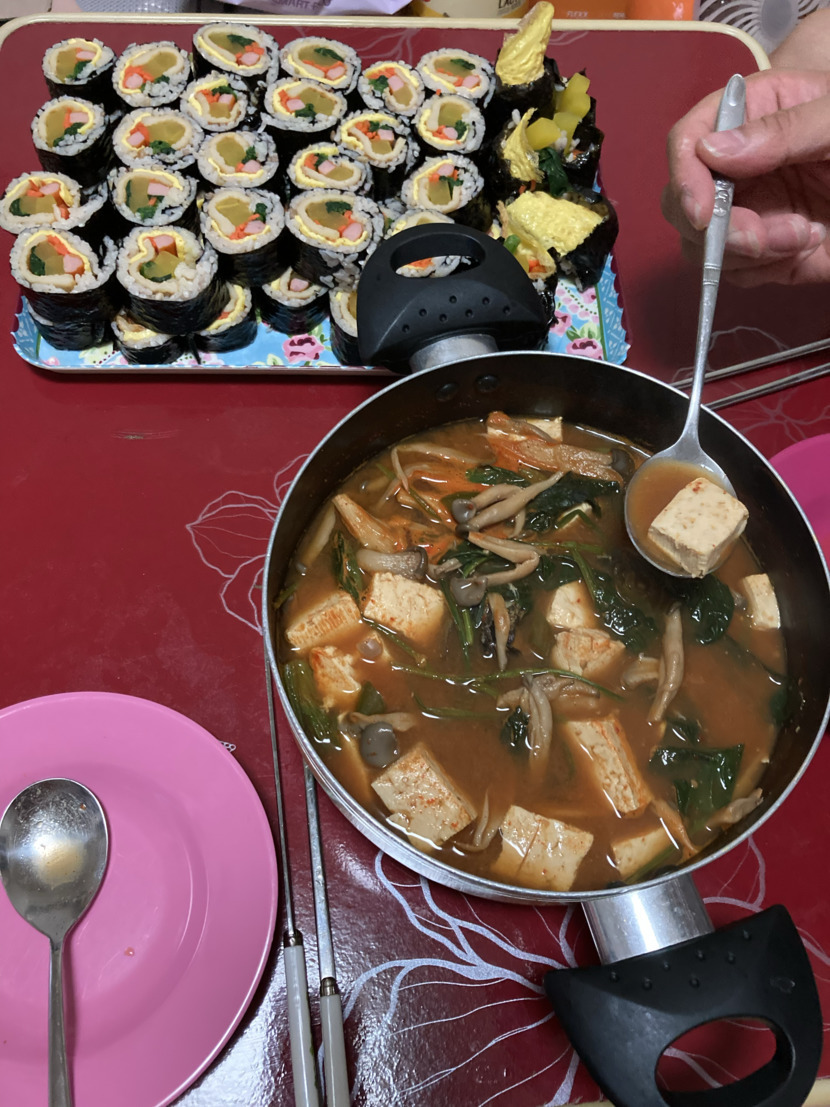 주말에 김밥 된장찌개
