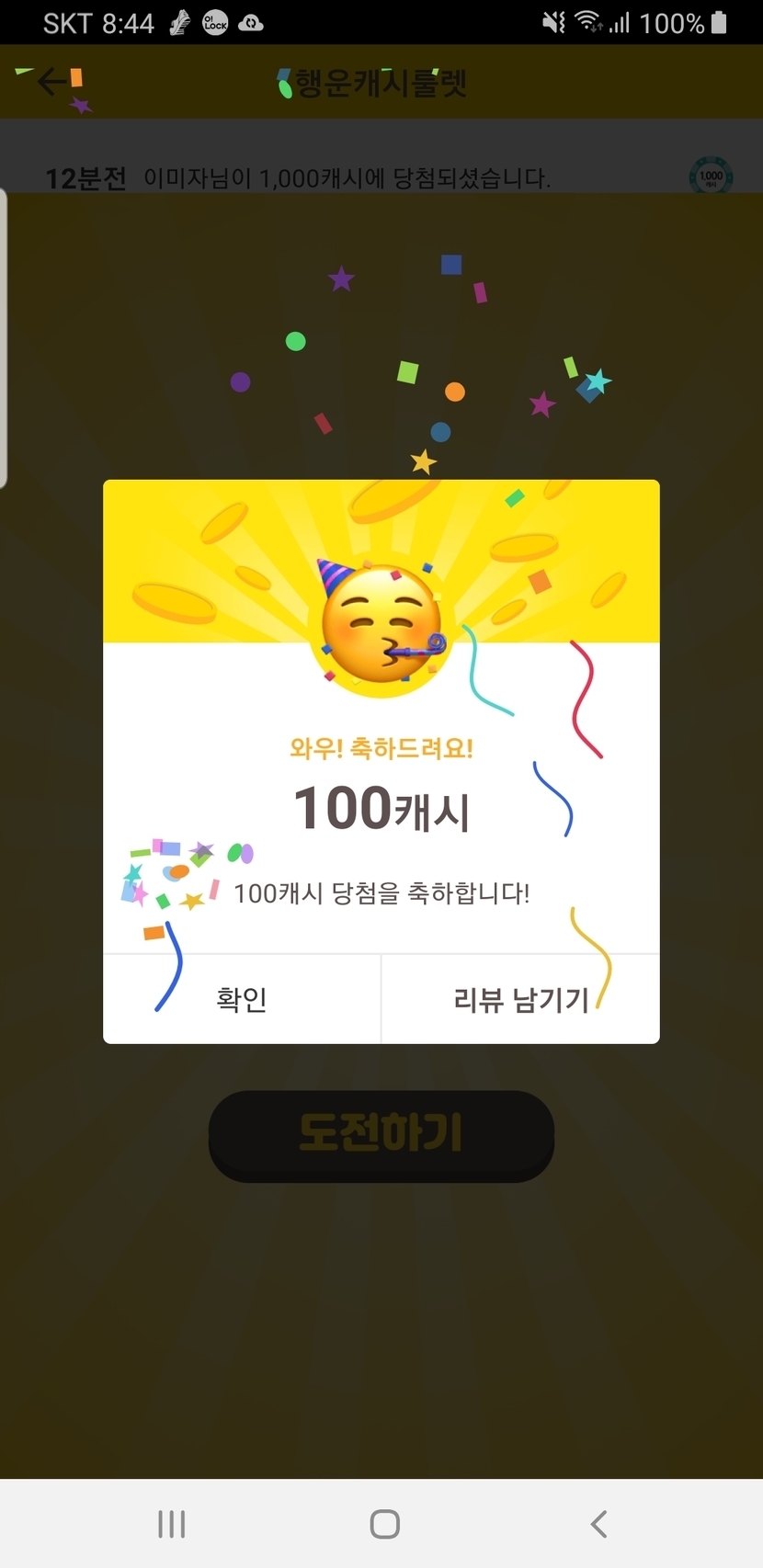 100캐시 근 한달만에 ㅋㅋ