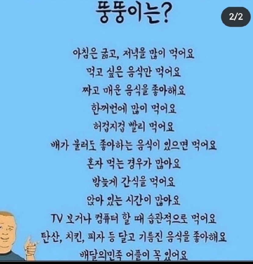 뚱뚱이 점수...전 무난히 올백이네요 ㅋㅋ