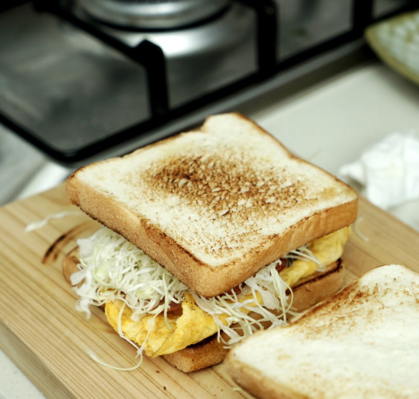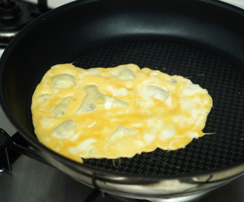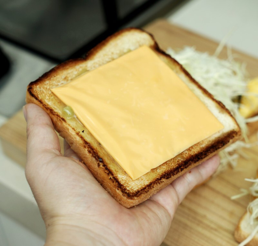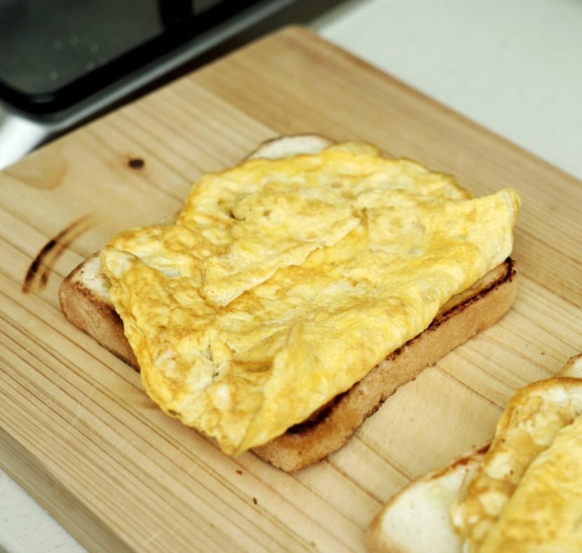 계란을 소금 한꼬집 넣고 식빵 크기에 맞게 부쳐주시구요~여기에 옥수수콘 섞어도 좋아요