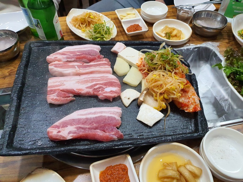 아들,조카,삼겹살에 소주한잔