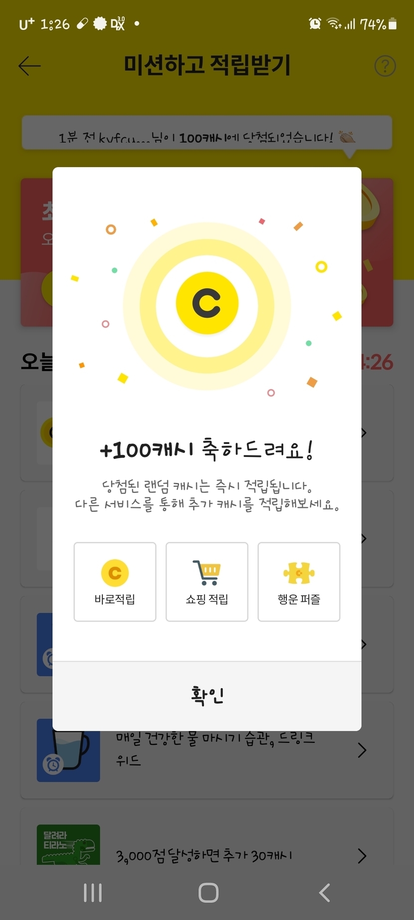 미션 완료~~ 100캐시~♡