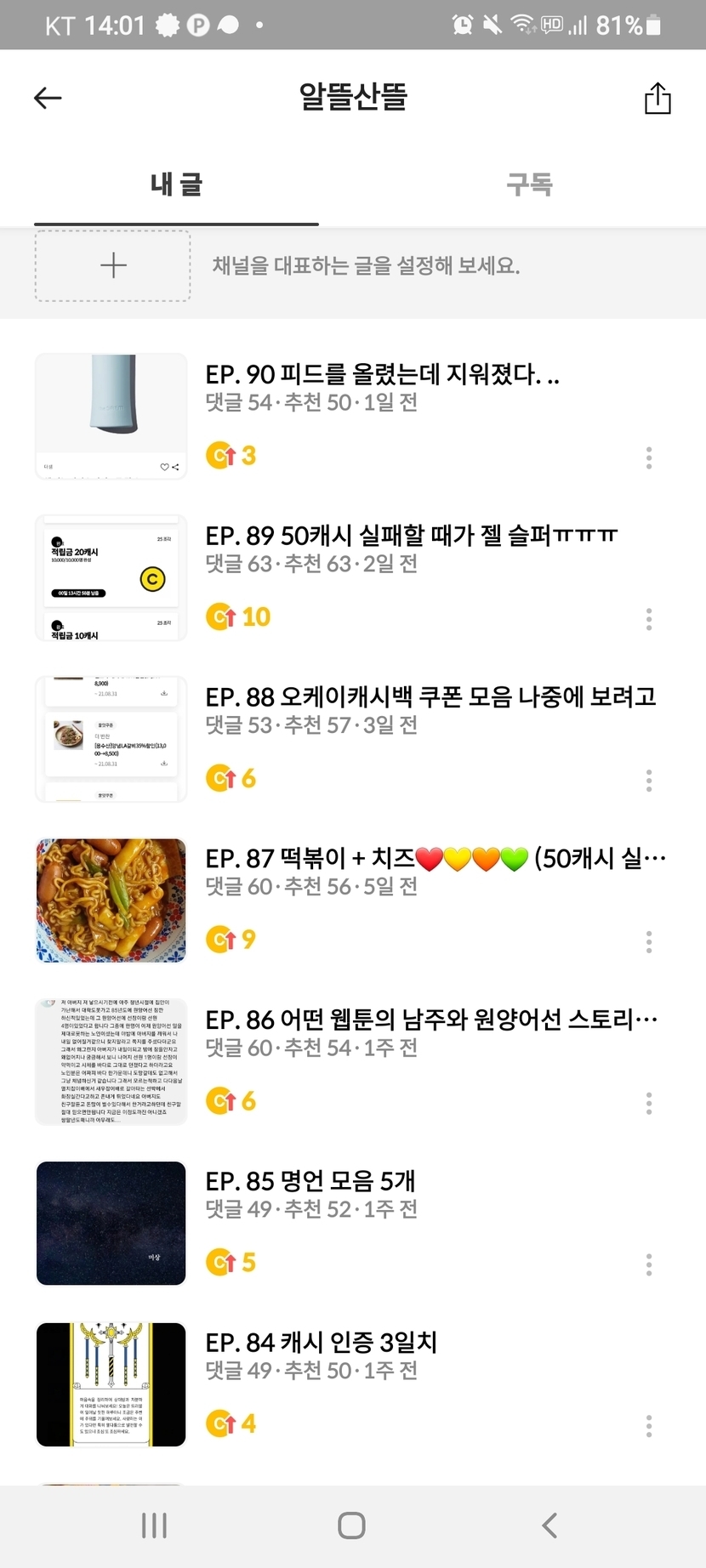 21.08.13 249 읽음 EP. 91 평균 50 -> 54캐시 알뜰산뜰 구독하기 59 57 콘텐츠의 수익 5 답방을 오신 덕분에 조금씩 늘고 있네요 60까지 가기 어렵구ㅠㅠㅠㅠ 57 0 / 300 입력