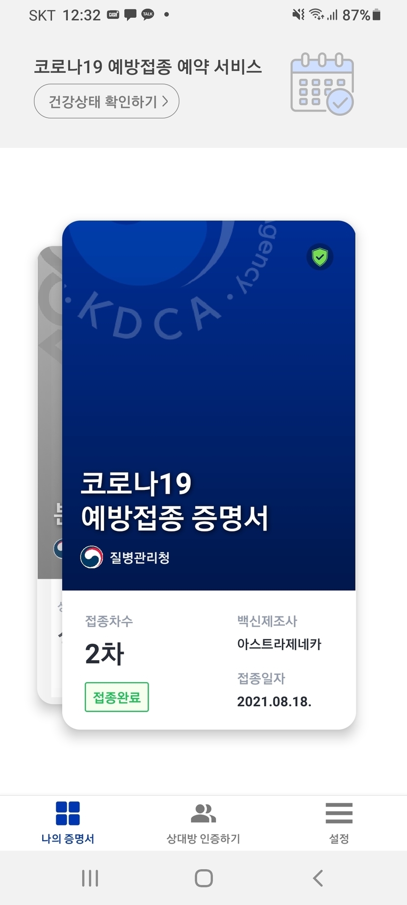 백신 접종 완료 인증