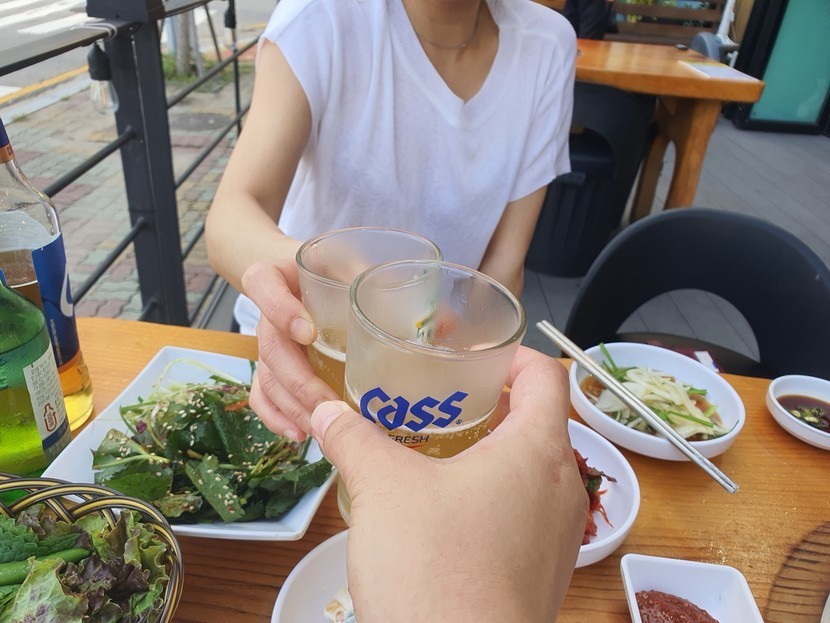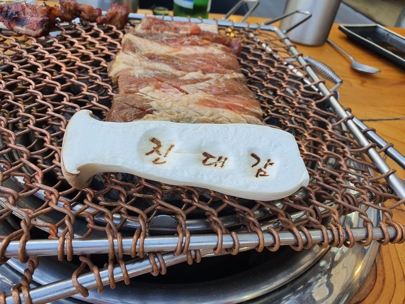 돼지갈비는 야외에서