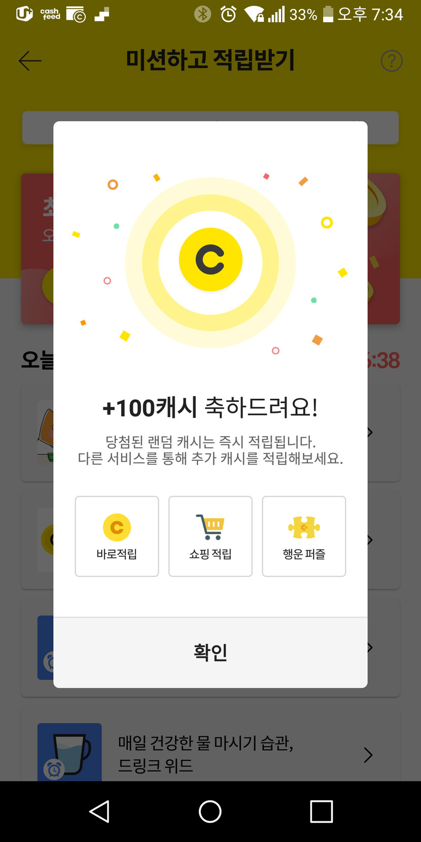 100캐시 받았어요