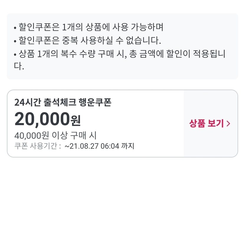 2만원 쿠폰은 4만원이상 사야 쓸수 있어서 고민이 되더라구요.