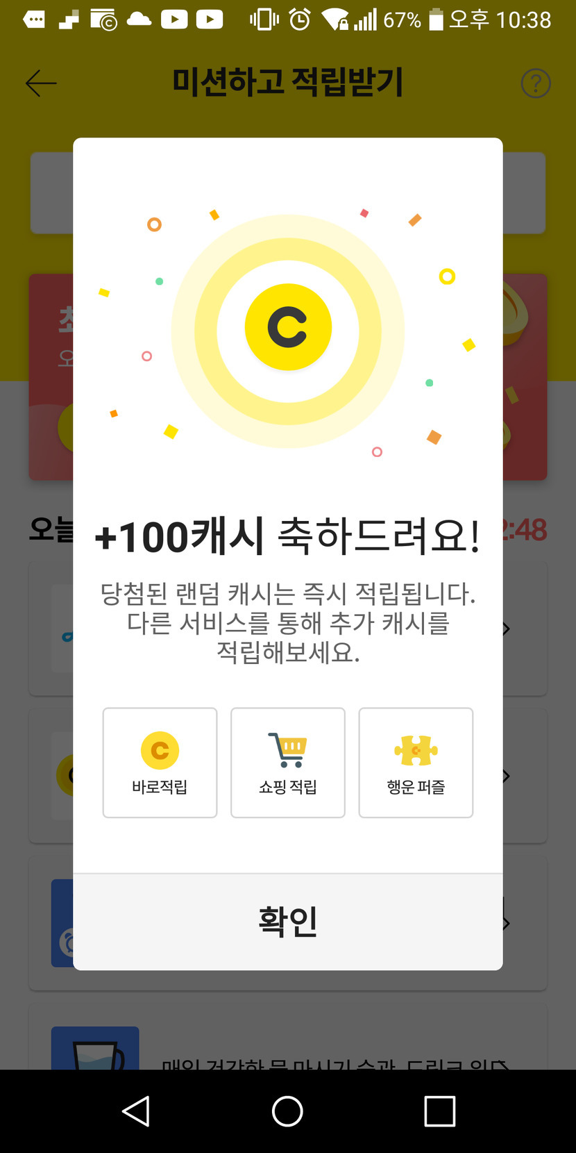 100캐시받았어요