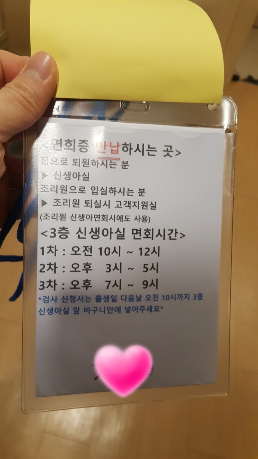 아직 아기가 신생아실에 있고 한번씩 가서 보기만 하는지라