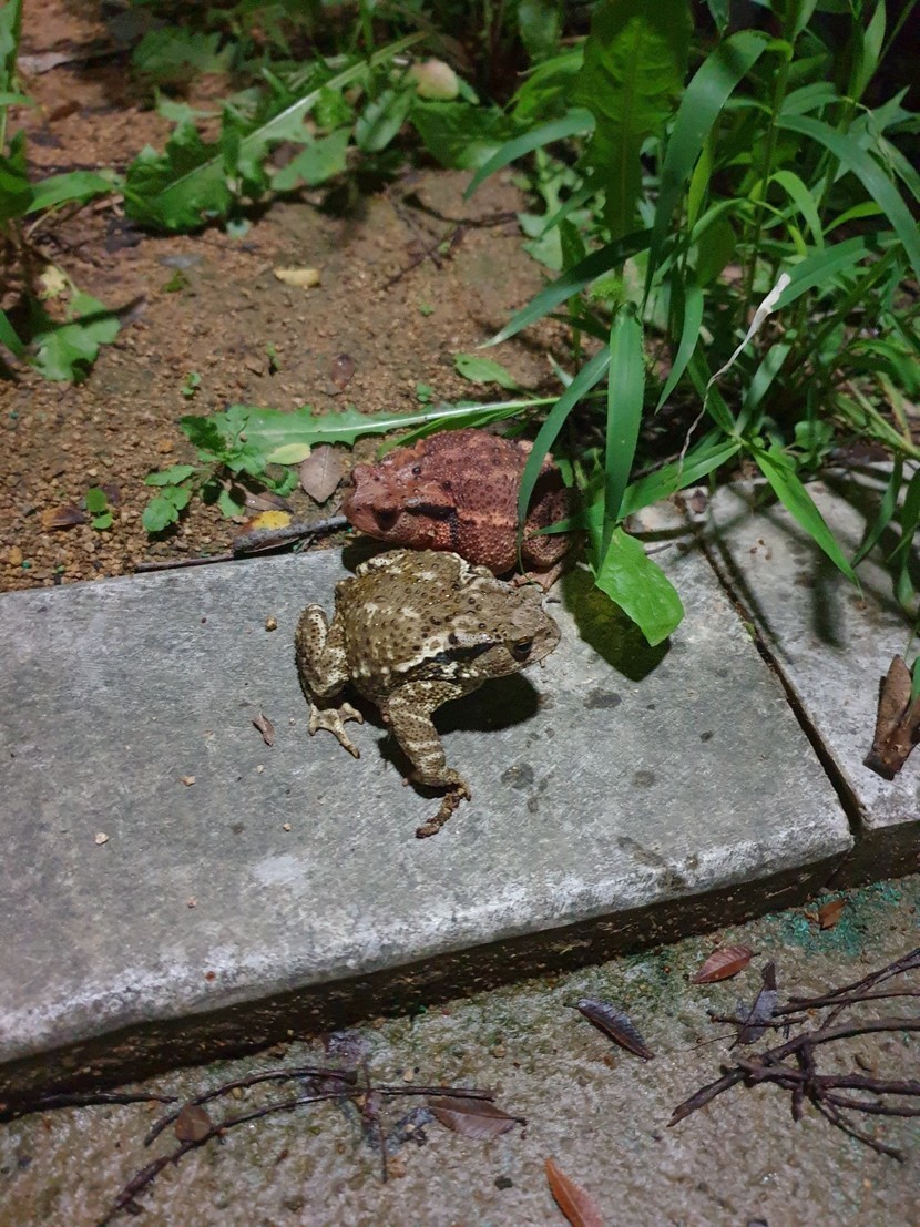 색이 다른 두꺼비 두 마리