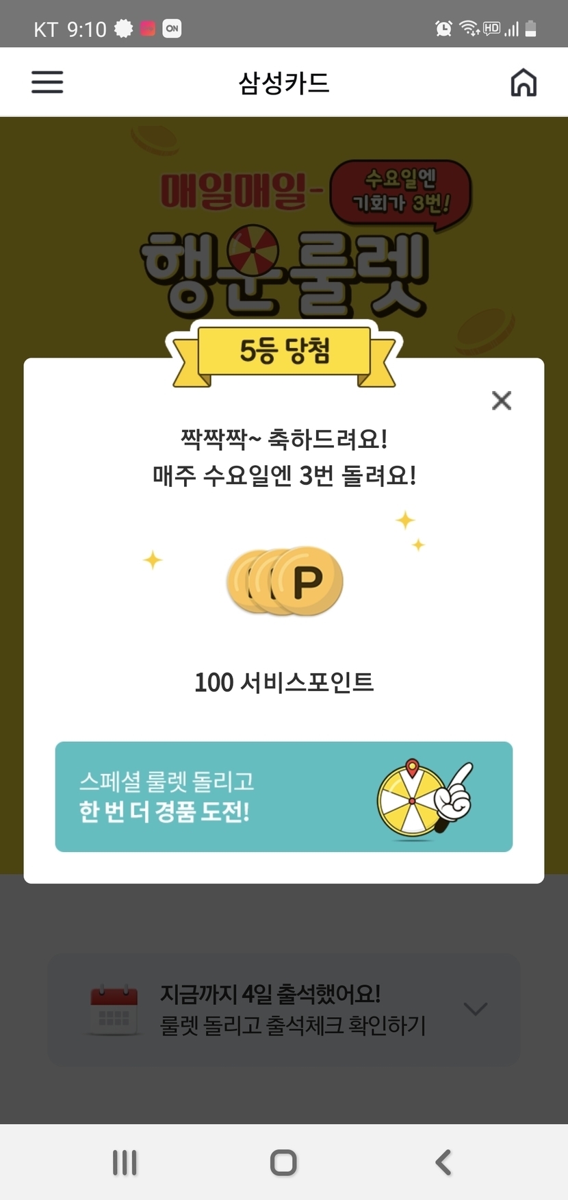 와우 삼성 카드 롤렛 포인트 겟