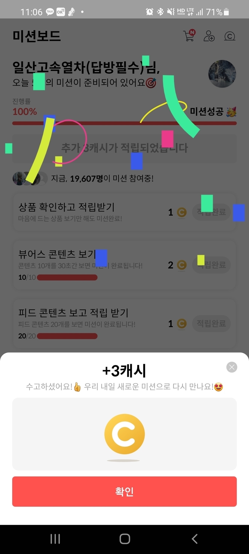 어제 미션완료 인증합니다.