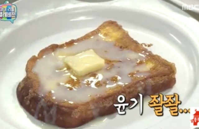 식빵을 구운후에 버터 올리고 연유 또는 시럽