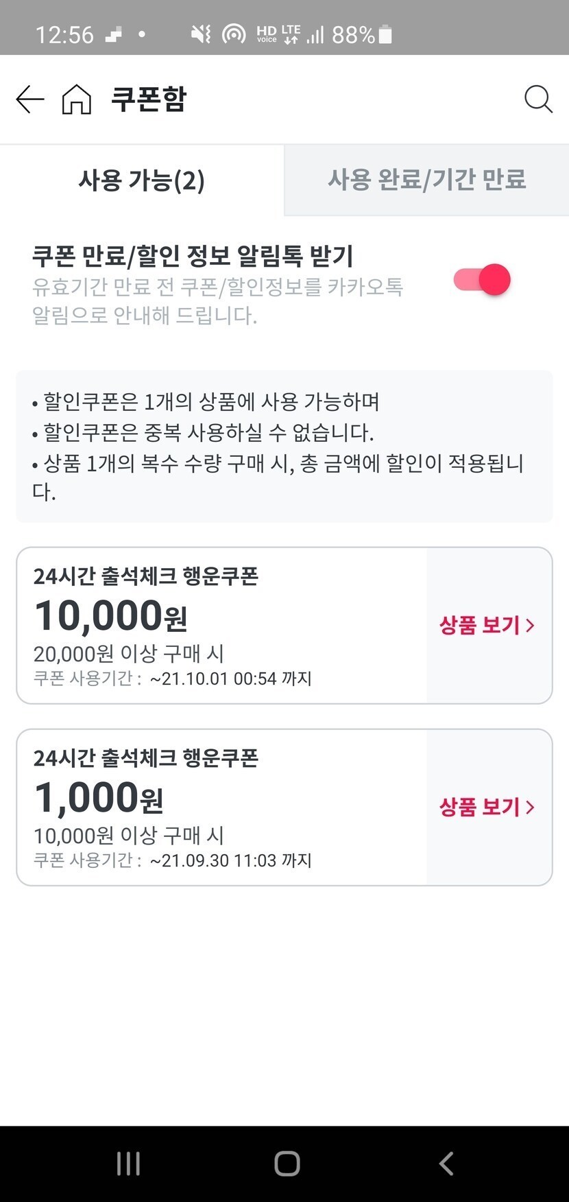 1만원 쿠폰 당첨.....