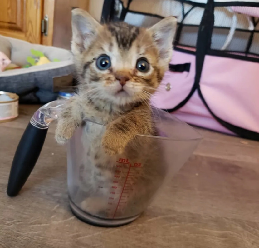 녀석의 무게는 243g으로 어찌나 작고 가벼운지 고양이가 아니라 햄스터라고 해도 될만한 크기였죠! 앨리사 씨는 쥐처럼 작은 아기 고양이에게 마우스라는 이름을 지어주었습니다.