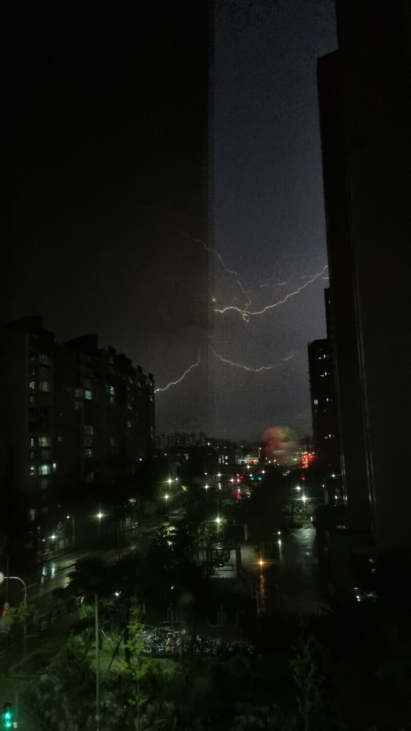 어제 밤 천둥 번개 소리에 놀라서