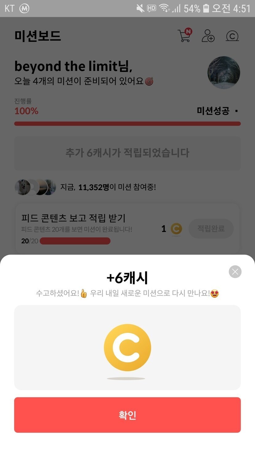 6캐시받고 피드미션 마무리