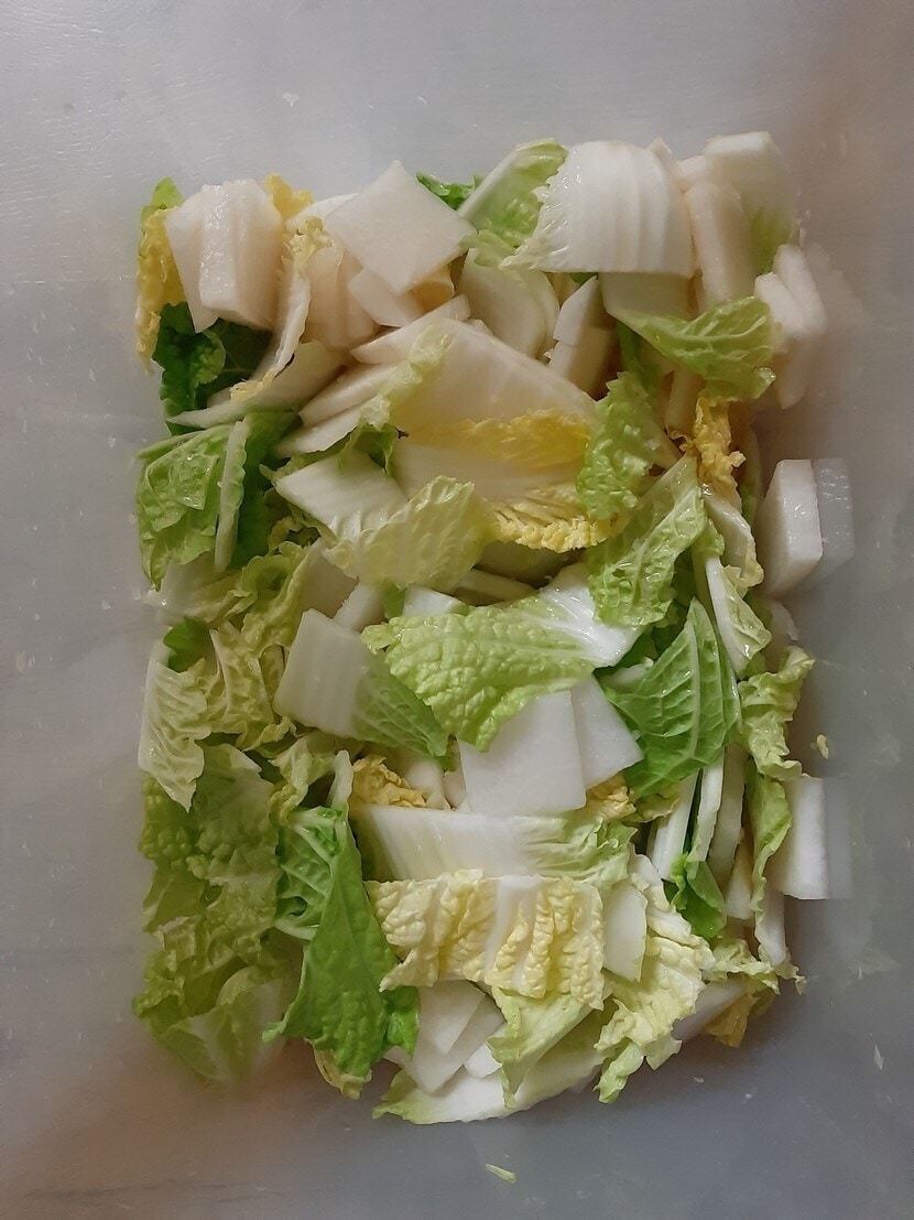 저는 실파 대신 대파 흰부분을 썰어 넣었더니 색감이 조금 부족하지만 기름진 음식에 잘 어울리는 나박김치랍니다. ⚘⚘⚘