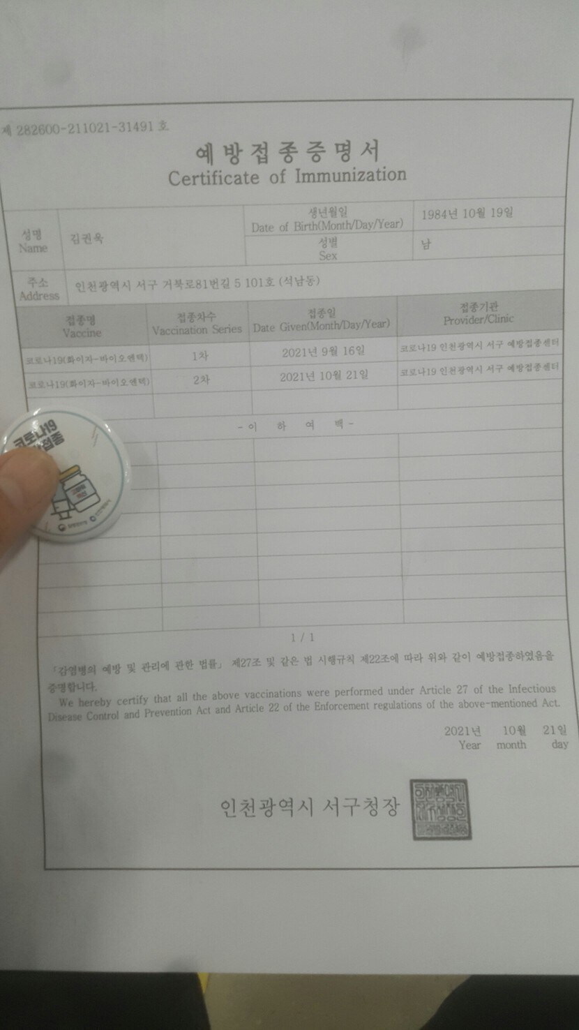 2차백신맞았다