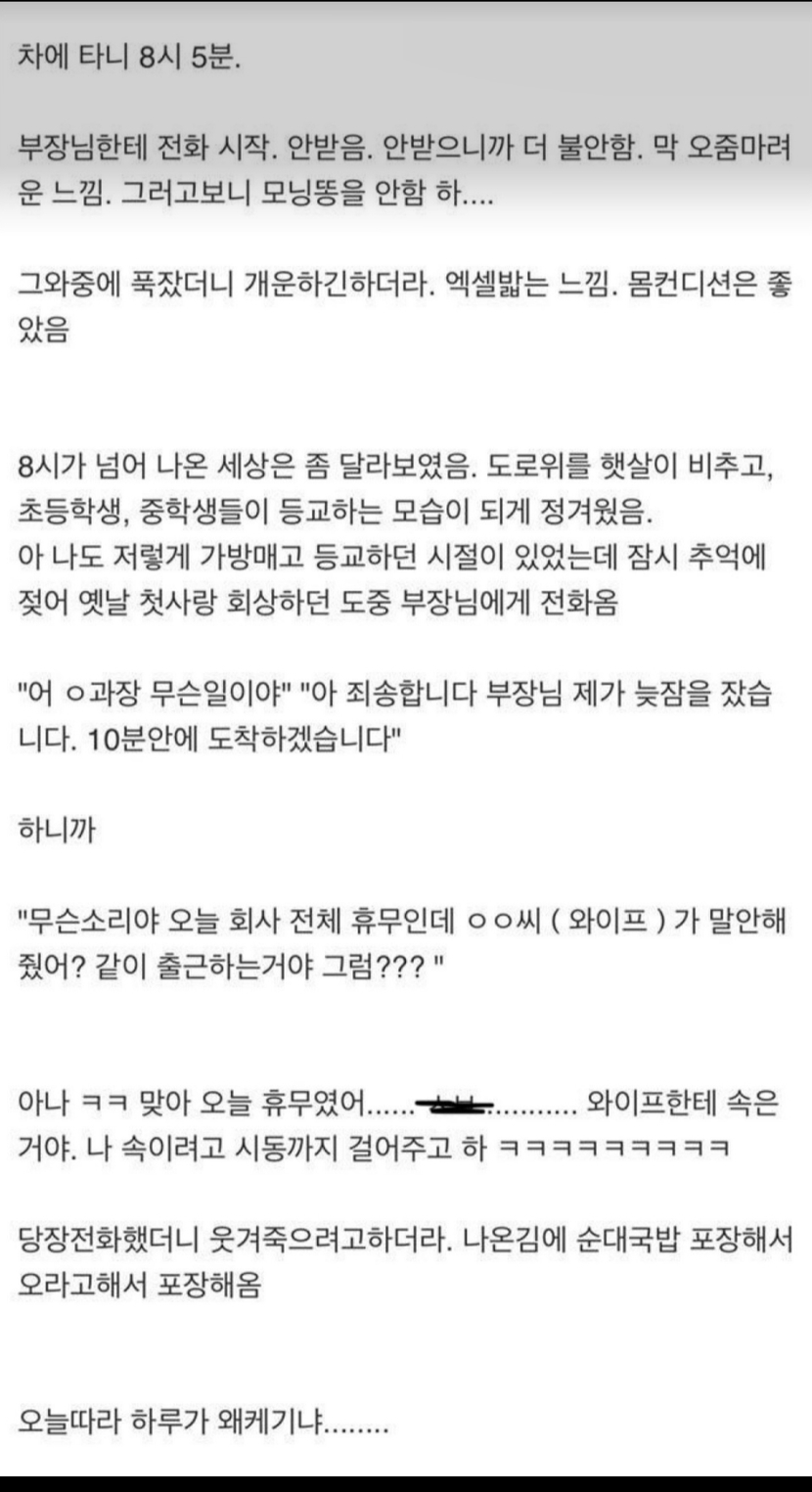 어제자 연휴인줄알고 지각한형님ㅋㅋㅋㅋ 와이프 유쾌하시네