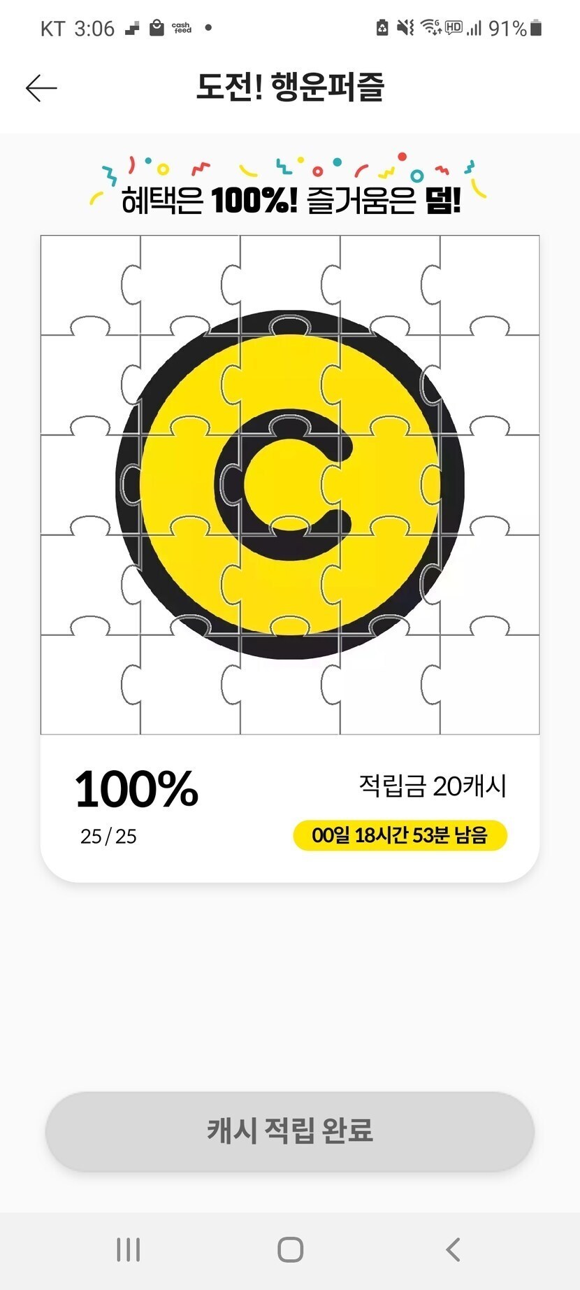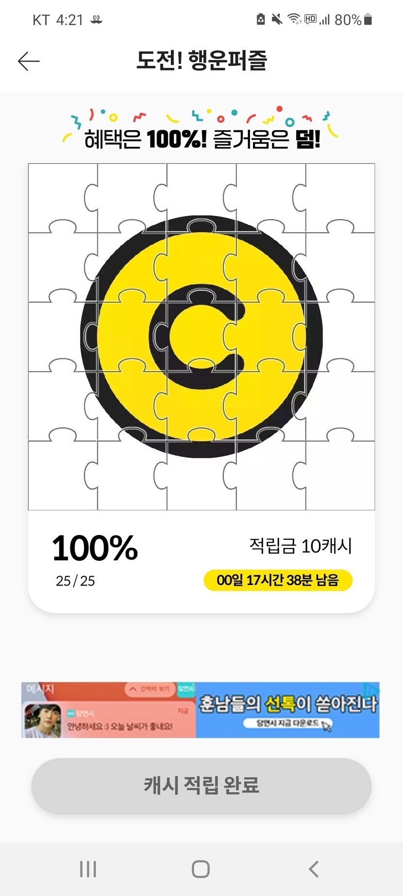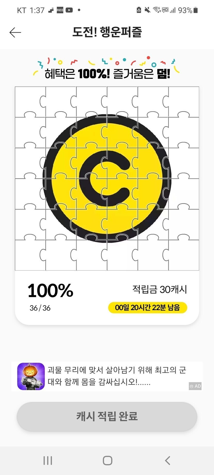행운퍼즐 60캐시!