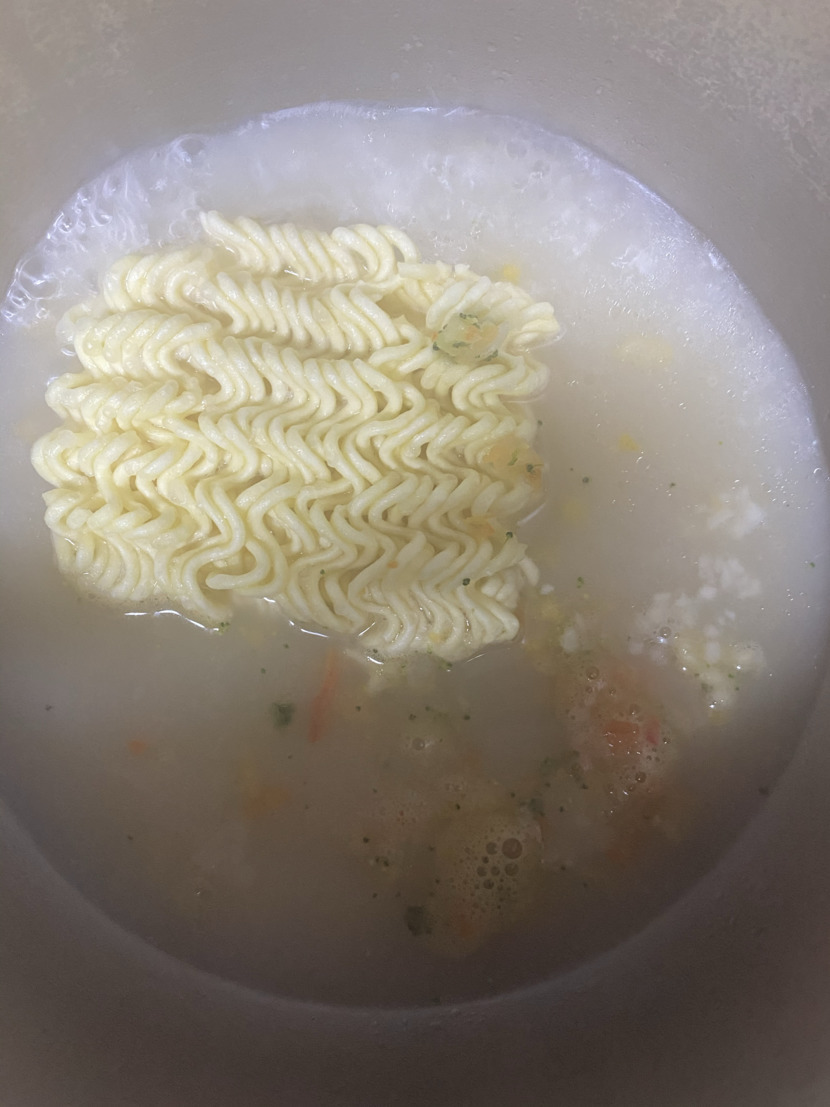 - 국물이끓으면 라면사리 먹을만큼과 야채잘게 썬것(볶음밥용 찹찹야채-냉동실보관), 다진마늘 조금 모두 한꺼번에 투하