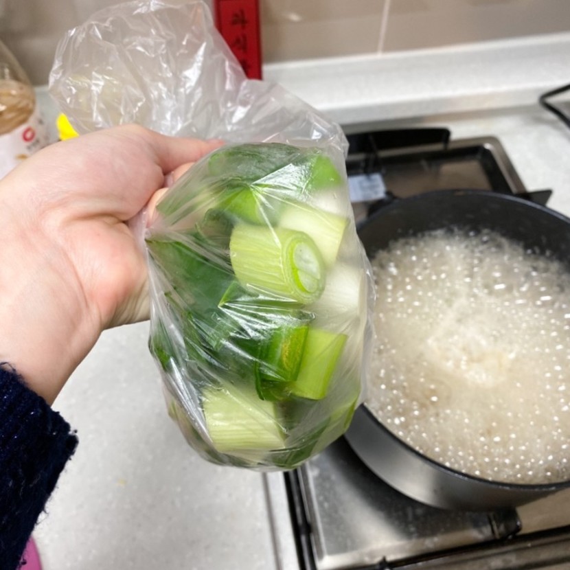 어제 미리 짤라둔 대파를 한줌 넣어요