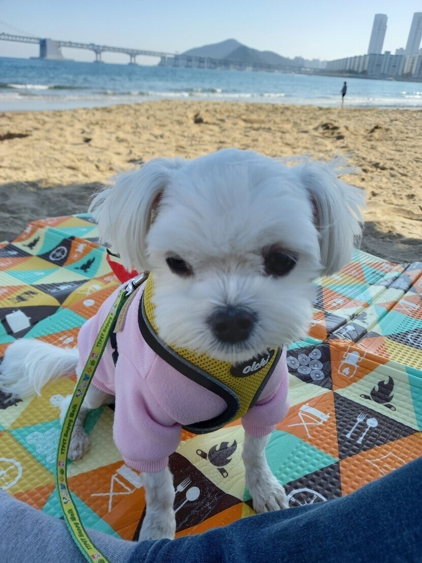 엄마랑 광안리 해변에 놀러갔어요.