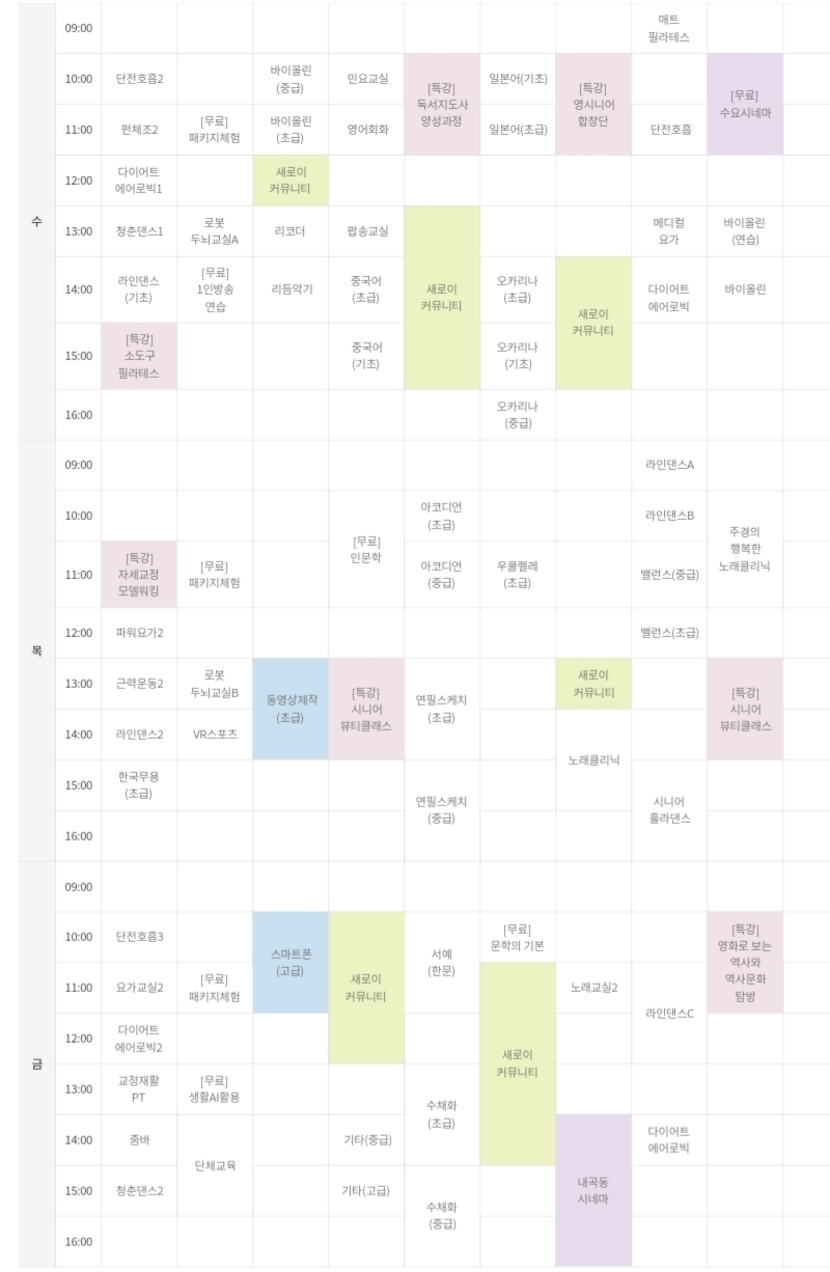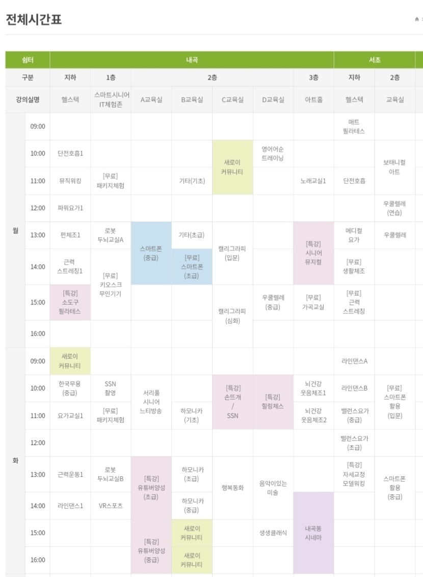 양재느티나무 쉼터는 별로 인원이 모이질 않아서 프로그램이 나와 있질 않지만,