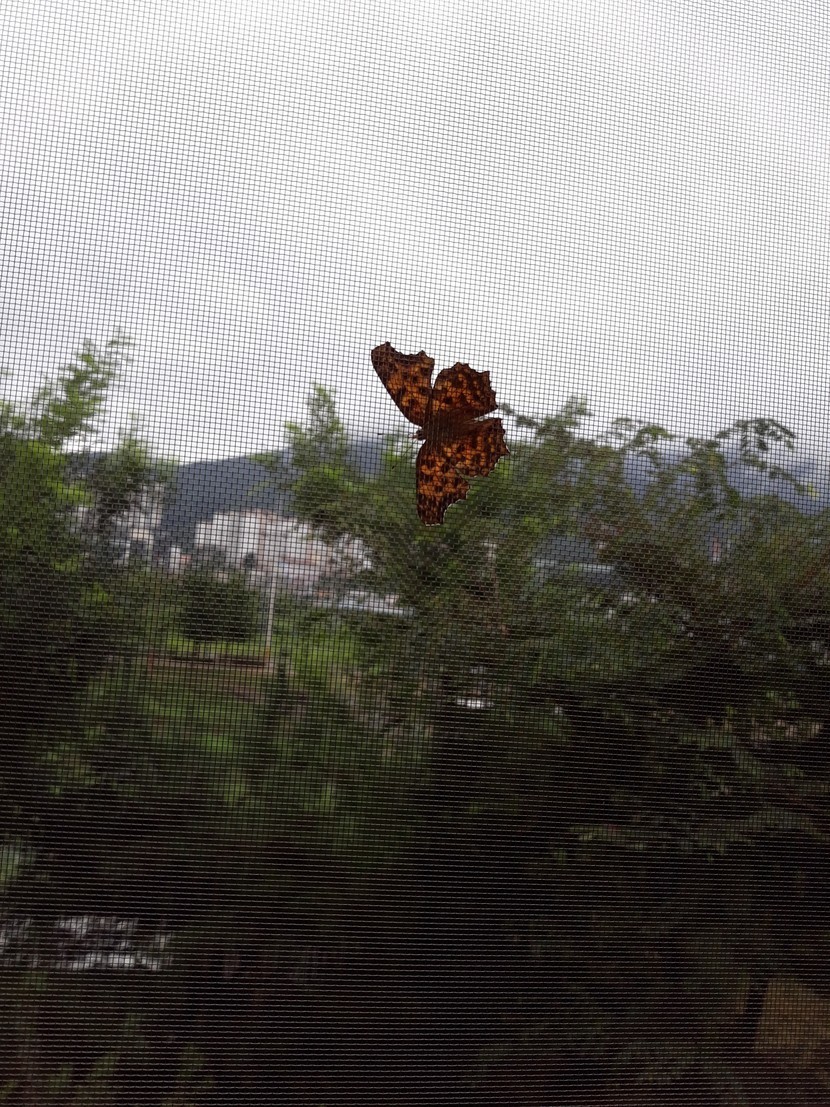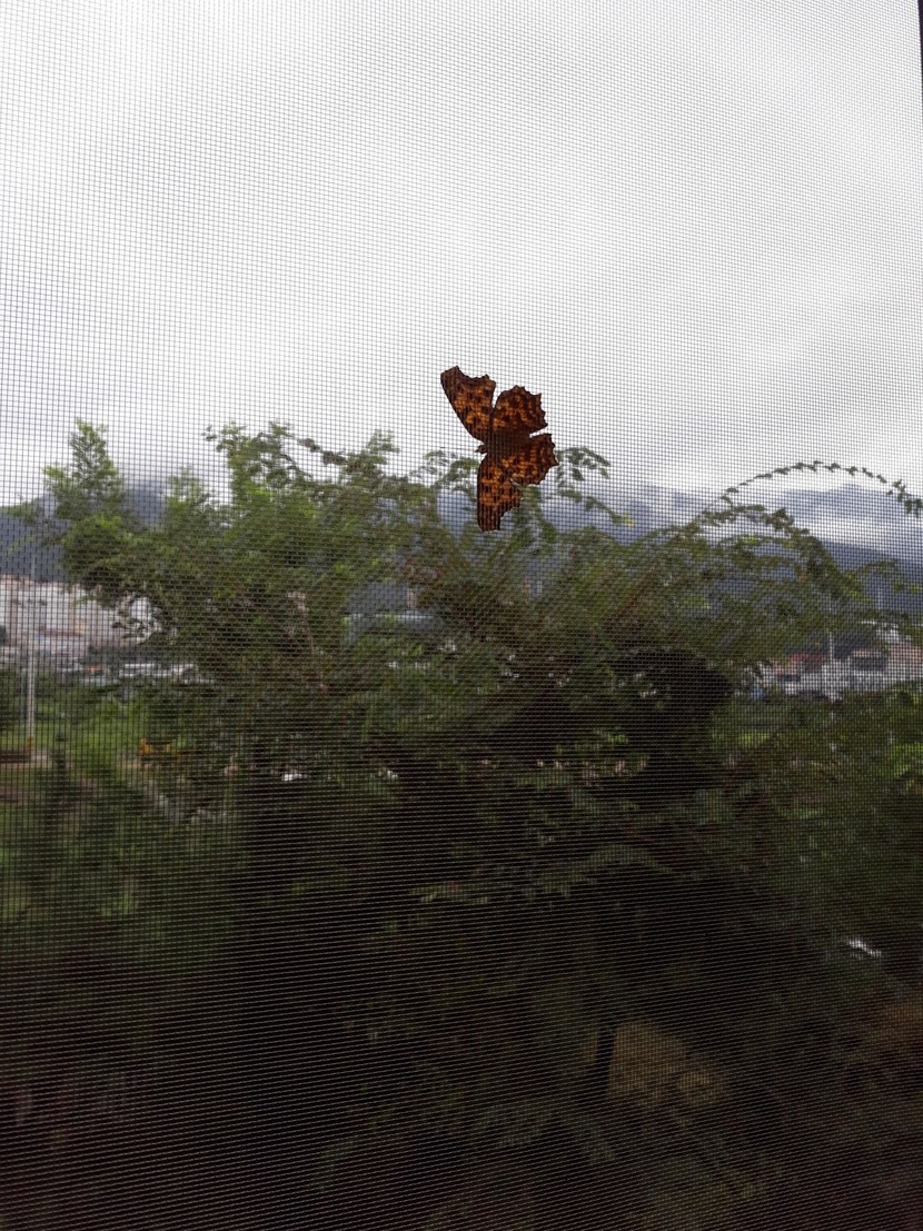 집 발코니에 나비 붙음 ㅎ