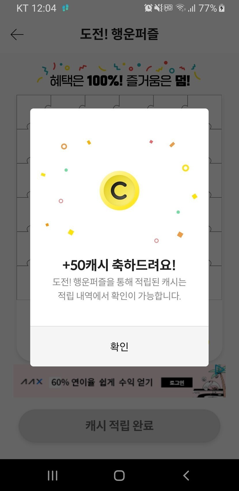 행운퍼즐 50캐쉬 완성